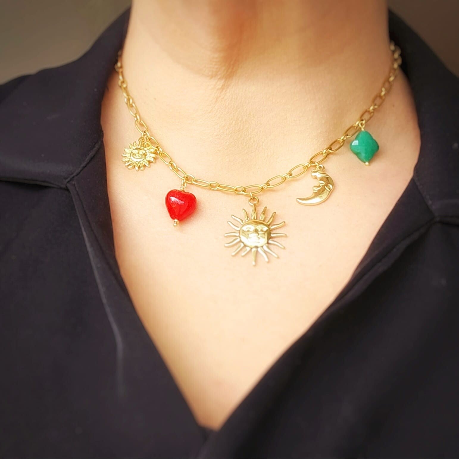 Bedelketting Goudkleur | Moon, Sun, Heart