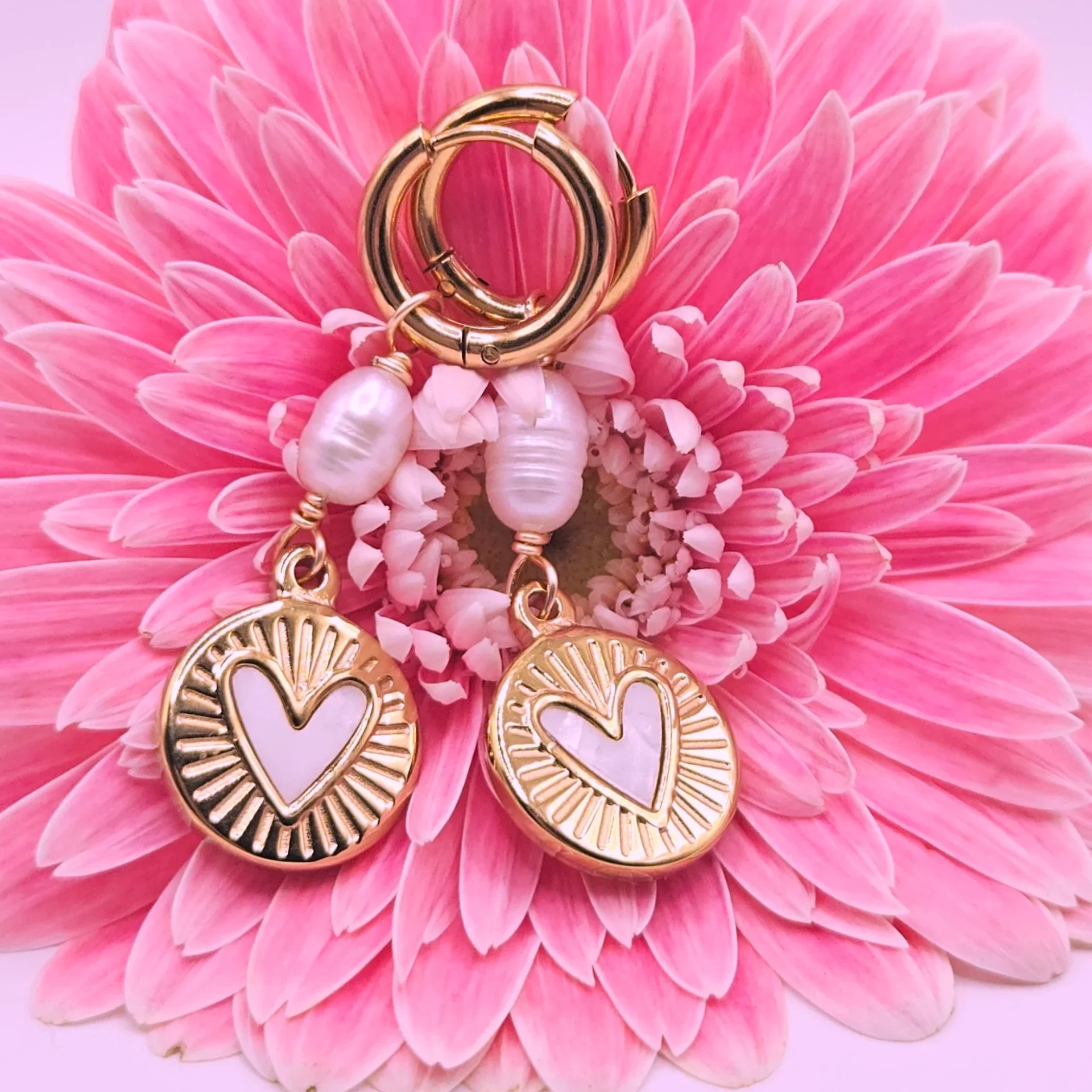 Oorbellen Bedeltjes | Wit Hartje met pareltje