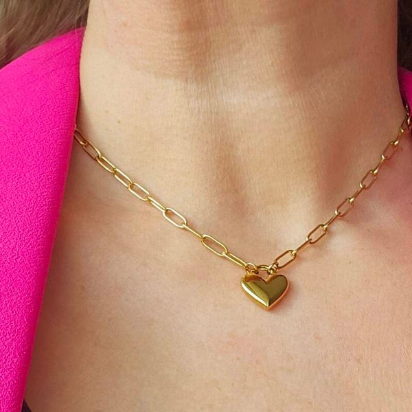 Mooie goudkleur Paperclip ketting met prachtig glanzend hartje! De ketting is van rvs/stainless steel. Lengte 40cm+5cm verlengkettinkje.