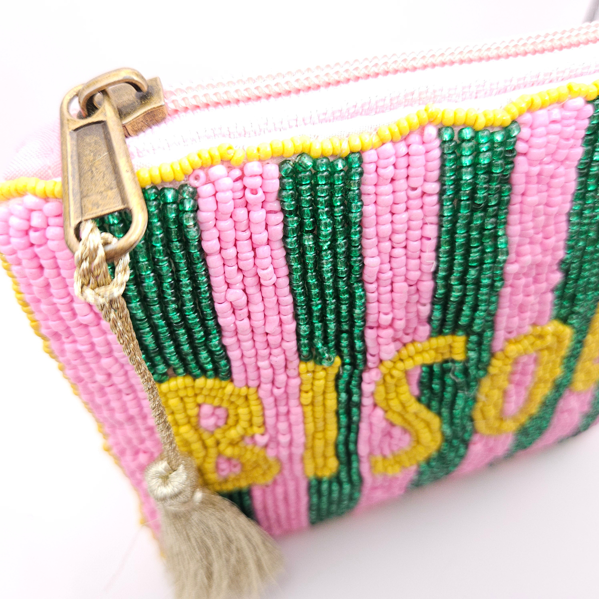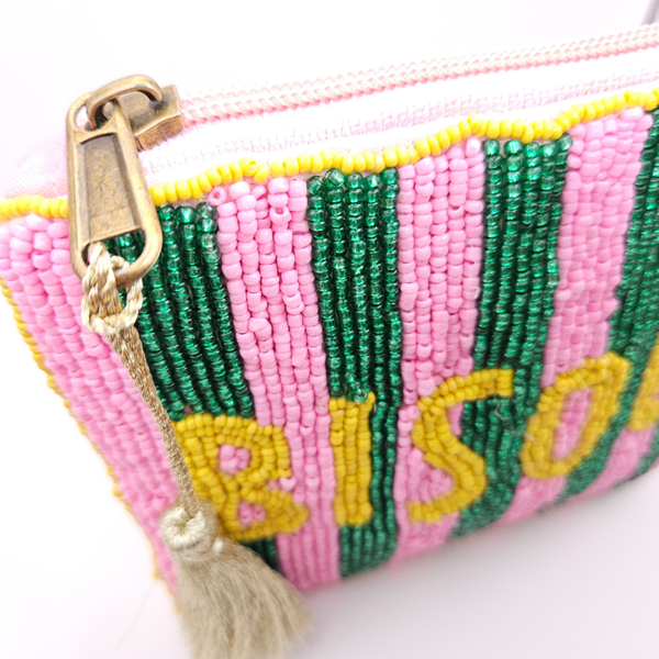 Super gaaf klein etui handgemaakt in Peru en voorzien van glanzende glazen kraaltjes en gouden kwast! Dit is een Limited artikel! Een leuke accessoires voor in je tas.