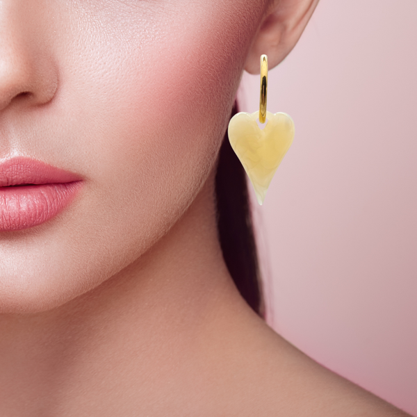 Oorbellen Acryl Kralen | Creme druppel Hartjes