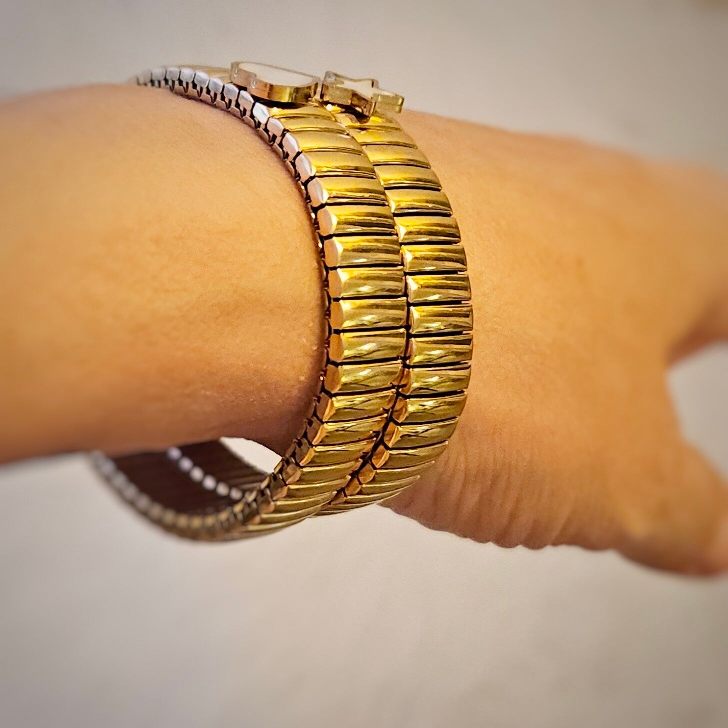 Mooie elastische RVS / stainless steel armband. De Must Have van dit moment! Mixt mooi met de andere breedtes. Inclusief luxe giftbag om de armband in te bewaren of cadeau te geven!